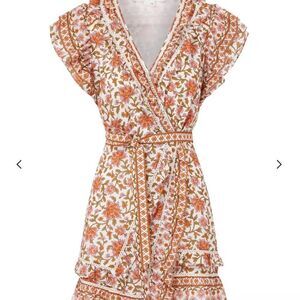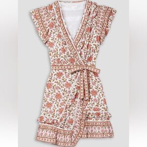 Veronica Beard Wrap Dress Mikhail Ruffled Womens Floral White Red Pink