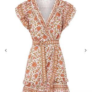 Veronica Beard Wrap Dress Mikhail Ruffled Womens Floral White Red Pink