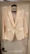 Chic ivory blazer with a tailored fit. Features a single button closure and flap pockets. Perfect for a polished look.