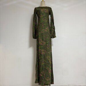 Veronica Beard 'Gemma' floral-print maxi dress featuring a round neckline, flared sleeves, and hook-and-eye closure and ties at the back.