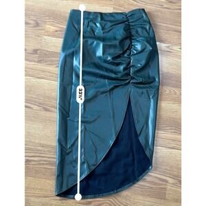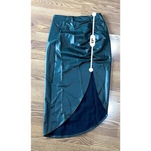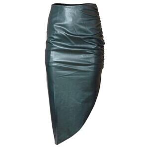 Veronica Beard green Ari Vegan Leather Front Slit Midi Skirt size 4