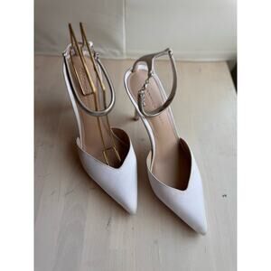 Veronica Beard ivory Lisa Chain Ankle Strap Pointed Toe Pump size 10