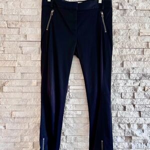 Veronica Beard skinny ankle pant in dark navy with zipper detail. Excellent, like new condition. Faux pockets on front. Zippers at ankles near sides. Faux welt pockets on back. See 3rd and last photos for most accurate color. 96% viscose / 4% elastane. Size 8 fits true to size. 17" across waistband, 29" inseam.