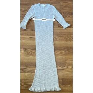 This midi dress is made of rib-knit fabric with ruffle hems.