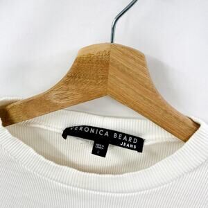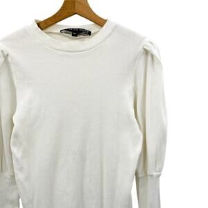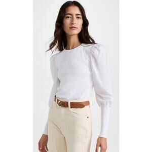 Veronica Beard white ribbed puff sleeve Donovan Top