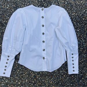 Veronica Beard white stretch poplin Clarke Button Back blouse M / L