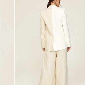 Veronica Beard's Braeton dickey jacket features a relaxed silhouette crafted of a two-tone linen blend. The look is defined by peak lapels, flap pockets, and a double-breasted button closure.