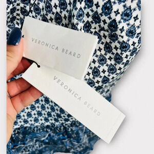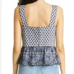 Veronica Beard Gari Cotton Peplum Paisley Print Top Blue White Button Back Sz 8