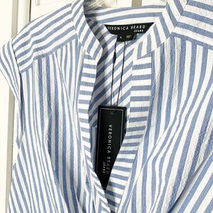 Veronica Beard Giuliana Seersucker Dress Blue White Stripe Women’s Size X-Large
