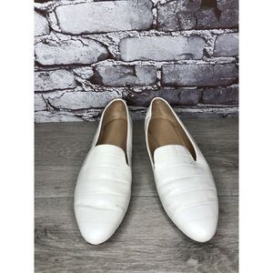 Veronica Beard Griffin White Leather Croc Embossed Loafer Flats Women Sz 9.5M US