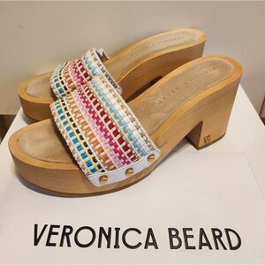 Veronica Beard Hannalee Woven Vamp w/Gold Studs Mules Sz.6.5 Ret.$330 in Dustbag