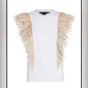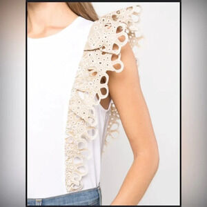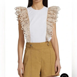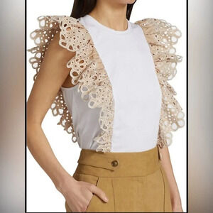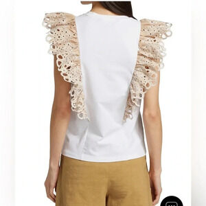 Never worn Featuring dramatic eyelet embroidered ruffles, Veronica Beard's Jadi cotton tee is detailed with a crewneck and cap sleeves.