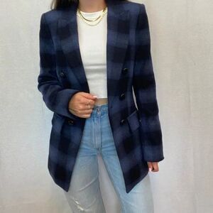 Veronica Beard Matteo Blue and Black Plaid Long Dickey Blazer Jacket