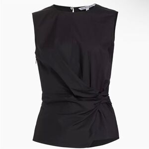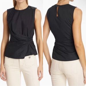 Veronica Beard NWT Bisa Twisted Stretch Cotton Poplin Top Black Sz 2 MSRP $248