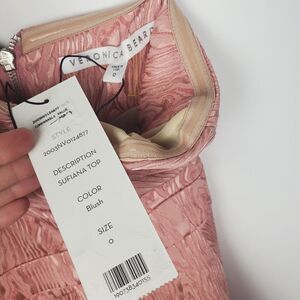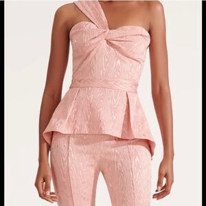 Veronica Beard Sufiana Moire One Shoulder Top Jacquard Blush Blouse Zip Back NWT