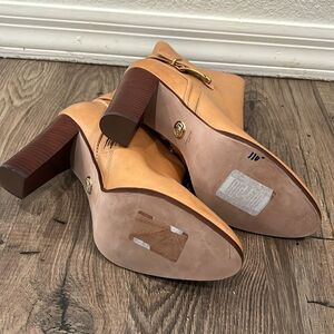 Never worn but tiny black spot on toe that’s picture. Didn’t try and get it out but believe it will come clean