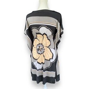 Veronica M Black, Gray, and Cream Floral Batwing Swim Cover Size Extra Small.