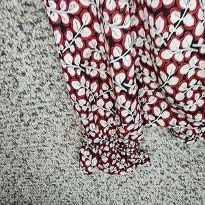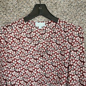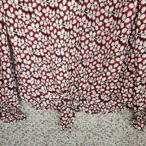 Veronica M Blouse Womens XS Red Long Sleeve Waist Tie V Neck Casual Ladies