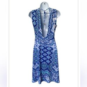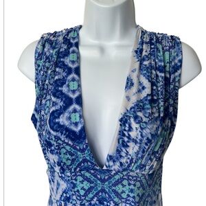 Veronica M Bosworth V Neck dress blue abstract mosaic print excellent Size M