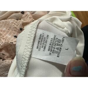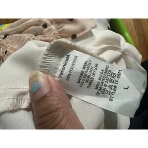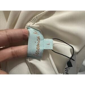 Elegant and breathable, this Veronica M top features a soft cupro fabric with a flattering surplice neckline in classic ivory. Lightweight and versatile, perfect for work, brunch, or casual evenings. Size Large.