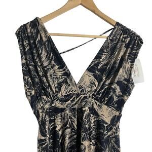 Veronica M Deep V Tunnel Dress Navy Floral Sleeveless Midi Dress Sz M