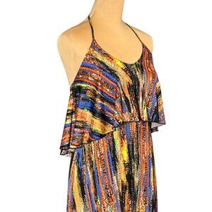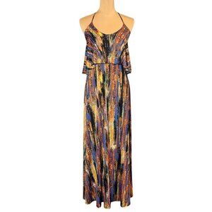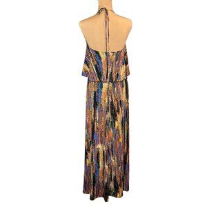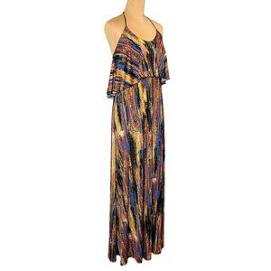 Veronica M Flowy Printed Maxi Dress Sz.M Multi Halter Open Back Boho Feminine