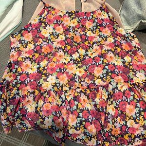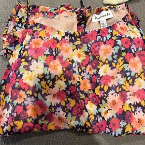 Halter Tank - skinny straps by neck with flowy cut to the blouse. Colorful floral pattern. Perfect with jeans or black pants. No tags but never worn.