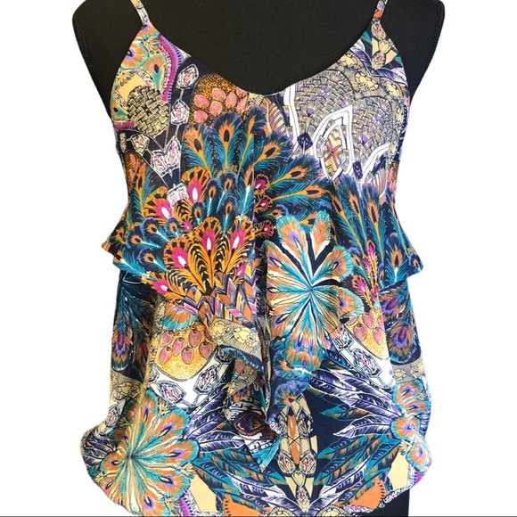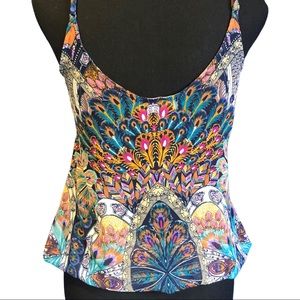 Vibrant tank top with intricate patterns. Features a mix of colors and a stylish design. Perfect for casual wear.