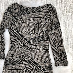 Veronica M Open Back 3/4 Sleeve Printed Dress L