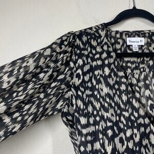 Veronica M Size XS Animal Print Wrap Top Blouse Tan Black Tie Side Long Sleeves