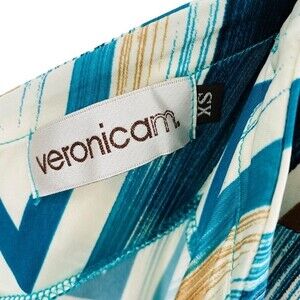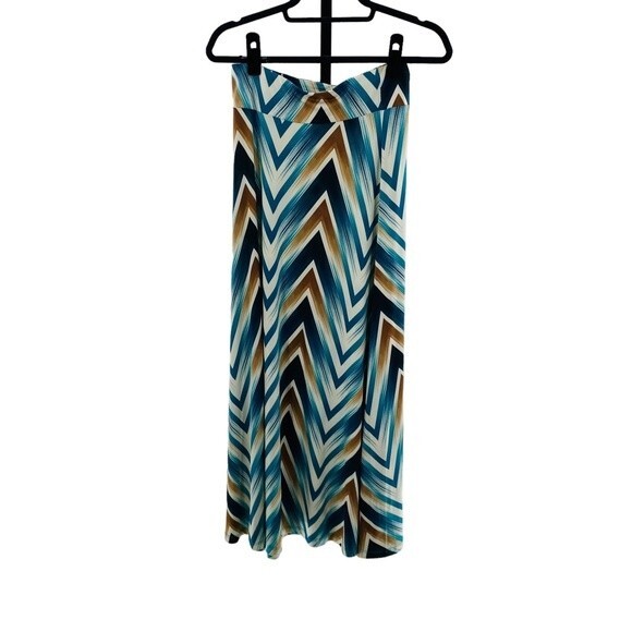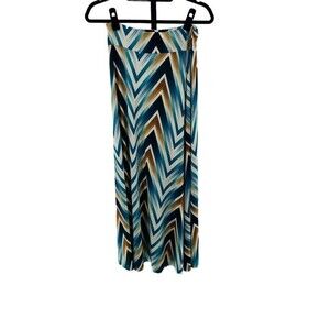 Veronica M Size xs Satin Stretch Flared Maxi Skirt Blue Gold Abstract Chevron