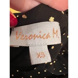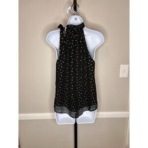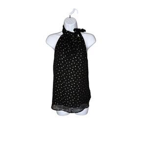 Veronica M. Womens Halter Chiffon Top Blouse Sleeveless Gold Dot Black Size XS