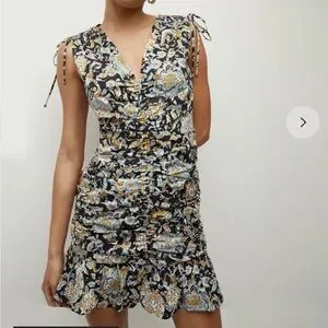ackson minidress is back. Patterned this season in a painterly paisley, it’s tailored from crisp poplin with a hint of stretch. The stretch-cotton is gently ruched into a waist-defining bodice, falling to a fluttery flounce hem. Delicate shoulder-ties add a sporty touch while a hidden back zipper closure ensures a perfect fit. Wear it with mules and hoops.