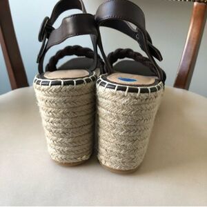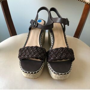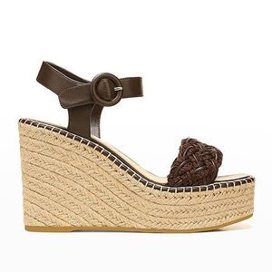 Anchored by a platformed espadrille wedge, Veronica Beard's Reema sandals feature a woven vamp strap.