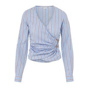 top, women, striped, blue, wrap, ring, cuffed, blouse, stretch, winter, summer, spring, fall, comfy, casual, travel, party, cocktail.
