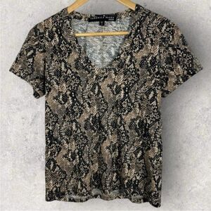 Veronica Beard Casey V-Neck Snake Skin Print Python Top Short Sleeve Size 2xl