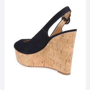 Veronica Beard Dali Peep Toe Suede Cork Wedge Sandals Black 11 NWT $325