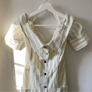 Veronica Beard Heath Linen Striped Midi Dress