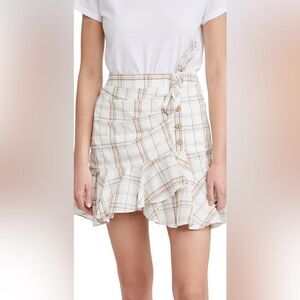Veronica Beard Kaia Multi Plaid Print Button Front Flirty Ruffle Mini Skirt