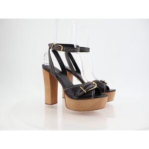 Veronica Beard Leonarda Platform Ankle Strap Sandals Black Leather Size 10M