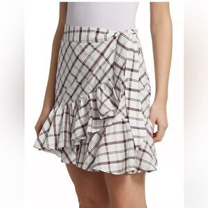 Veronica Beard Memphis Ruffle Mini Skirt Plaid White Multi Size 8
