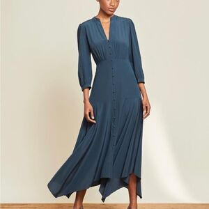 Veronica Beard Roksanda Petrol Blue Button-Front Silk-Blend Dress 2 NWT $650