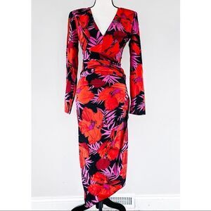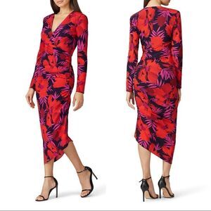 Veronica Beard Floral Long Sleeve Asymmetric Hem Alvaro Midi Dress Sz 2