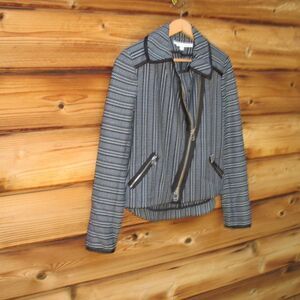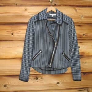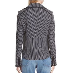 Veronica Beard Striped Asymmetrical Moto Jacket in Navy Blue / White. Size 0.