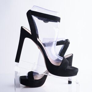 Womens Black Suede Darcelle Strappy Pump Heels