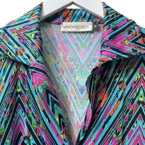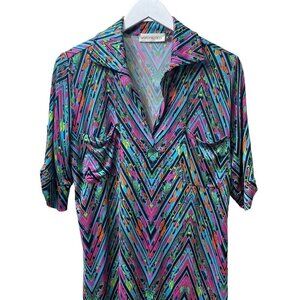 VeronicaM Shirt Dress Medium Luxe Stretch Jersey Pullover Short Sleeve Turquoise
