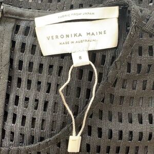 Veronika Maine Black grid mesh asymmetric top size 8 NWT