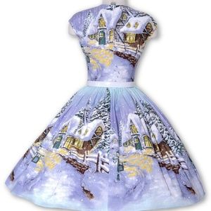 New without tags / never worn. Features full skirt, long zipper in back, flattering pleated shoulder detail, hidden lipstick pockets. Belt Not included. 100% cotton. Made in the USA.