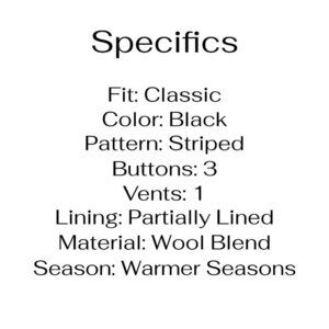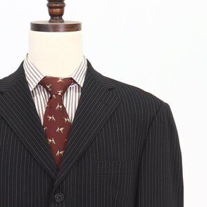 Verri 44L Black Stripe Wool Blend Three Button Suit Jacket O607