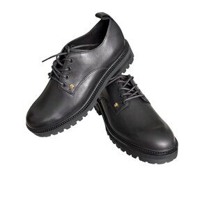 Versace 1014646 Men's Black 100% Leather Small Gold Logo Medusa Derby Shoes